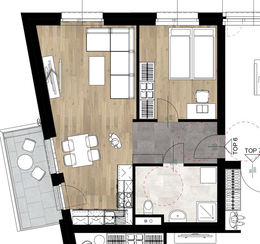 Wohnung im 1. Stockwerk mit 48 m² Wohnfläche und 5 m² Balkon